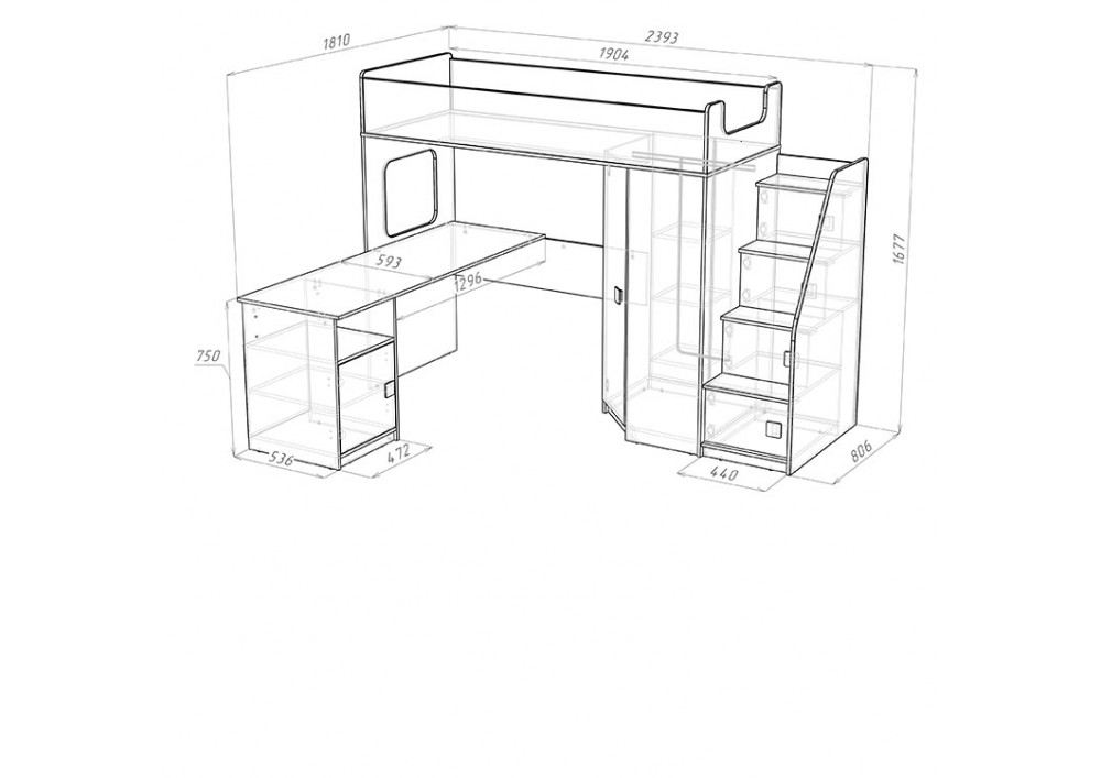 Высота кровати чердака всего 1677 мм.