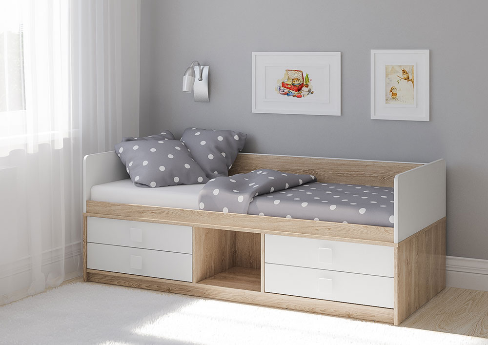 Функциональная и вместительная детская кровать от 3 лет​ Легенда E202 - современный и лаконичный дизайн.